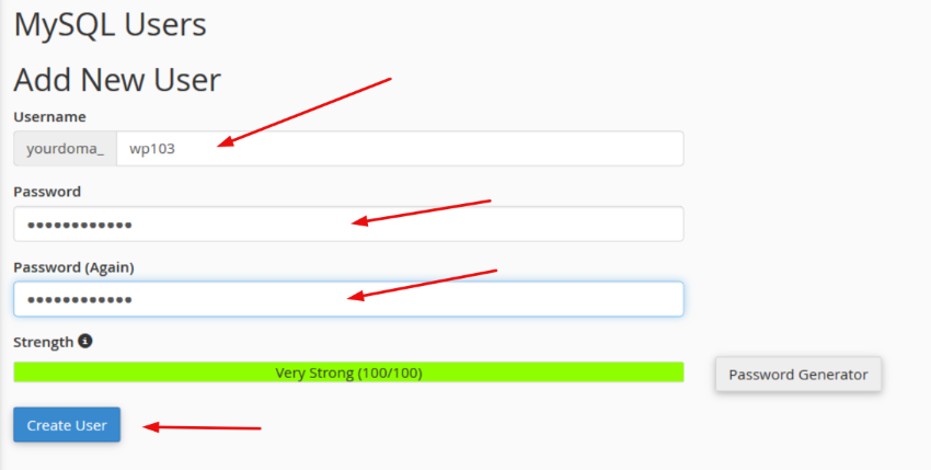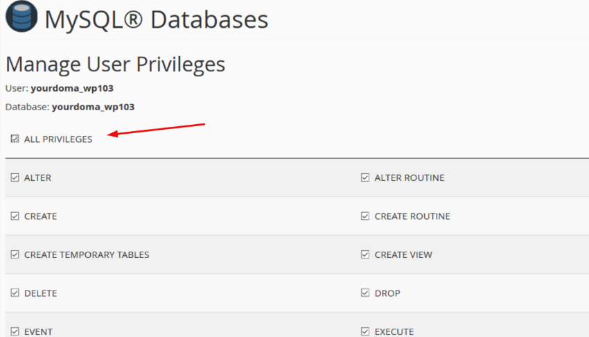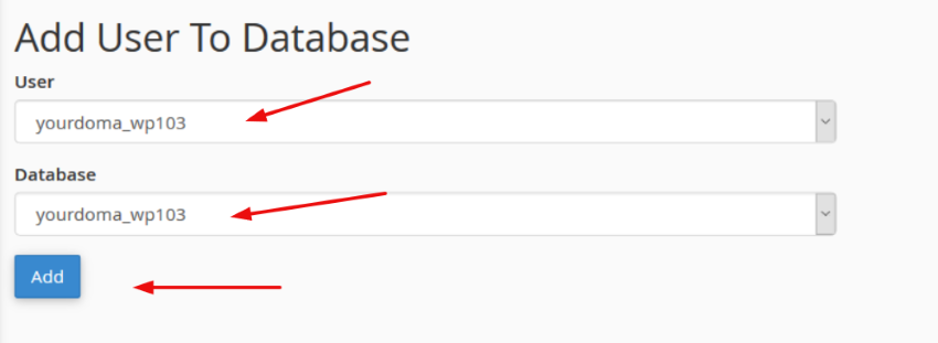 - Select your username and database from the provided drop-down lists and click on "Add"