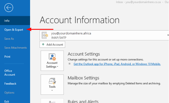 Note: If the previous host is cPanel based contact support@registerdomain.africa to explore the possibility of a server-side mail migration.