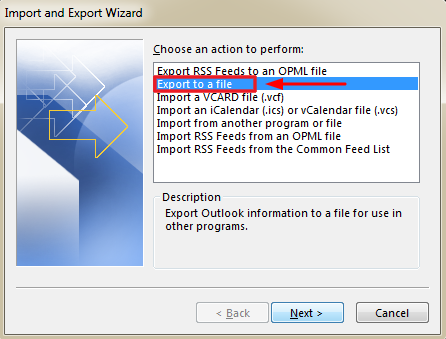 1.5.) Lastly, select "Outlook Data File (.pst)" and click on "Next"