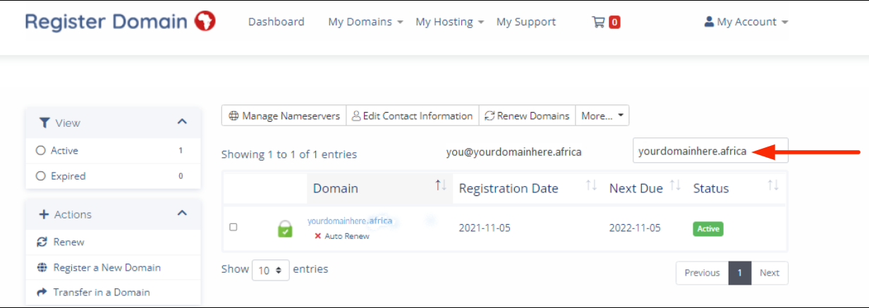 1.) Navigate to the Domains section in My Account.
