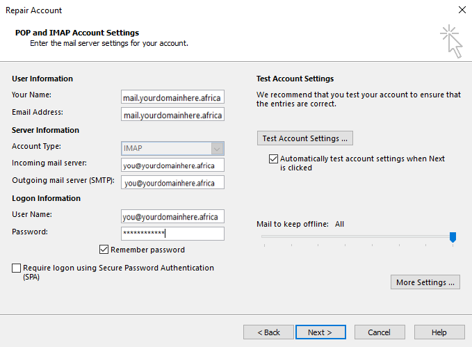 - Locate the email address in question and select "Repair"