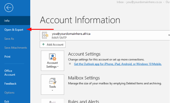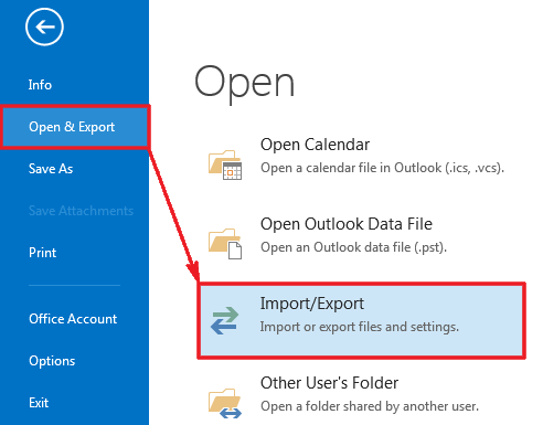 5.2.) Click on the "Open and Export" option
