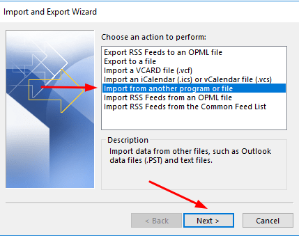 5.4.) Choose "Import from another program or file"