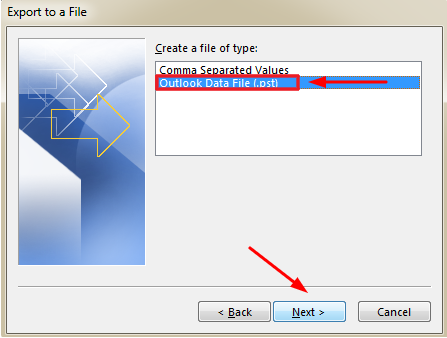 5.5.) Now choose the file type "Outlook Data File (PST)"
