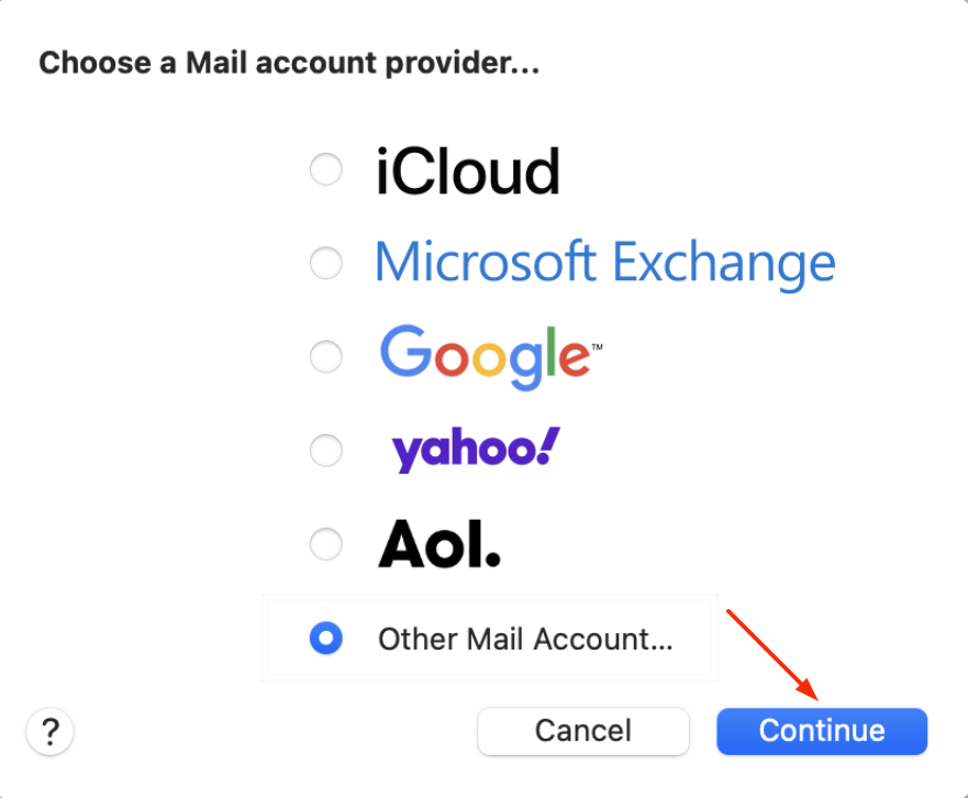 4.) On the "Choose a Mail account provider" screen select "Other Mail Account"