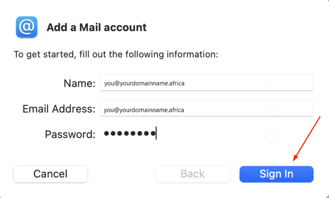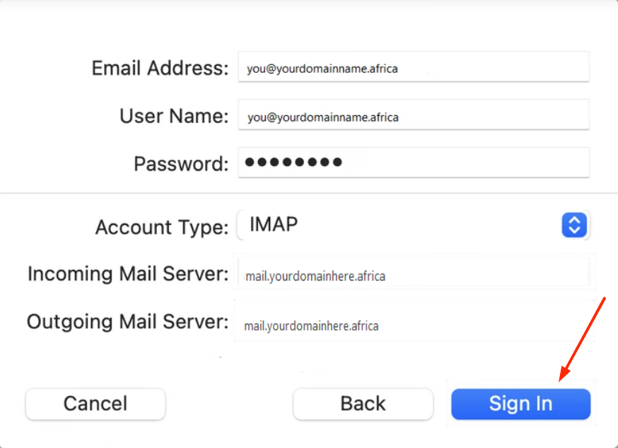 ii.)Incoming mail server - mail.yourdomainhere.africa