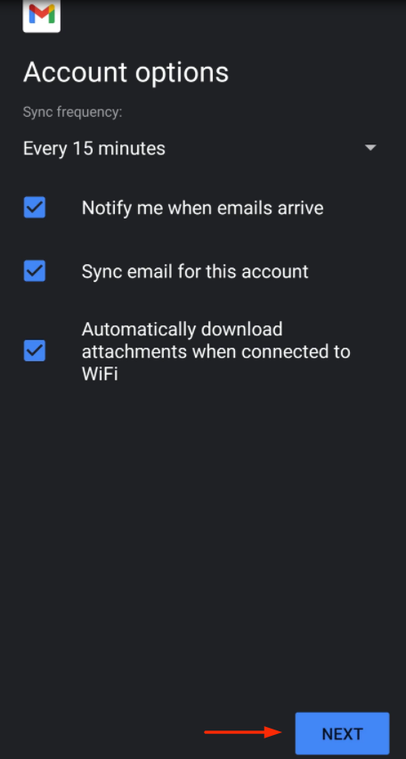 10.) On the "Account Option" page you can leave all settings as default and lastly select "Next"