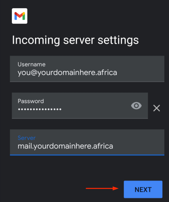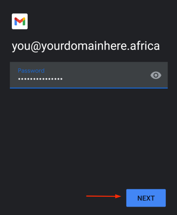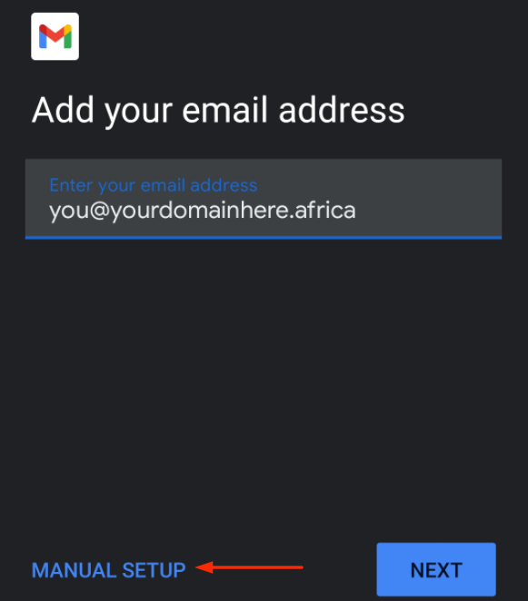 To access your mailbox through Gmail in a web browser you will require additional Google licensing (Paid Google service), for those who prefer a web-based interface we would advise making use of your webmail application that can be accessed via yourdomain.africa/webmail