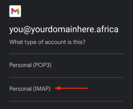 ii.) During this setup you will be prompted to set up your account as IMAP or POP3, while we strongly advise IMAP setup for a Smartphone, you can see the differences at IMAPvsPOP3.